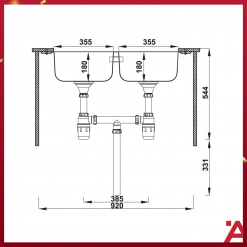 – Chậu rửa 02 hố chậu bằng nhau, lắp đặt âm