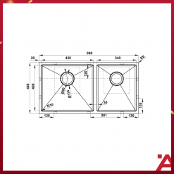 – Kích thước bồn: D450 x R400/ D340 x R400mm