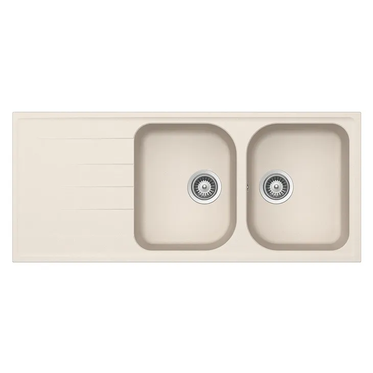 – Chậu rửa bằng đá, 2 hố chậu bằng nhau + cánh chờ, màu kem