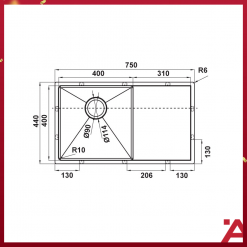 – Chậu rửa chén bát inox, 1 hố chậu & 1 bàn chờ, có thể đảo chiều