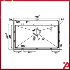 – Kích thước chậu: D740 x R440mm