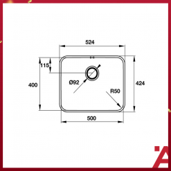 – Kích thước khoét đá: W500 x D400 mm