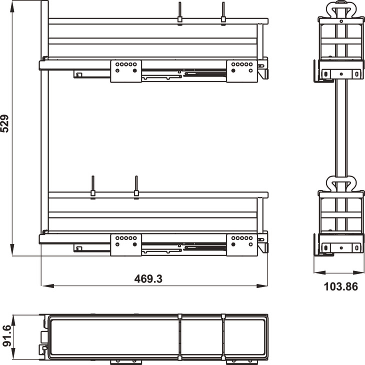 – Ray trượt giảm chấn lắp gài với rổ lắp bên