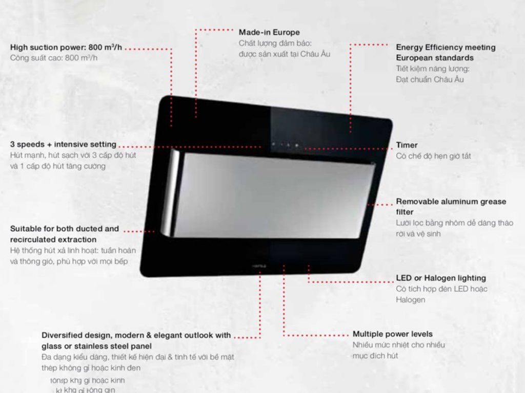 Máy hút mùi HAFELE HH-WVG80D phù hợp với mọi gian bếp gia đình, là thiết bị hút mùi được yêu thích nhất hiên nay.