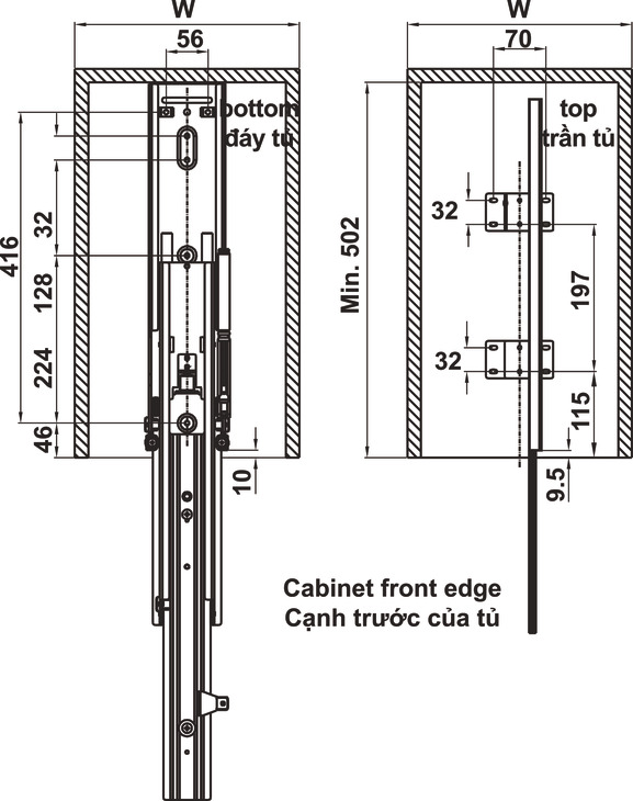 – Kích thước : R345 x S500 x C (1970-2270)mm