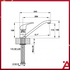 Thân vòi xoay linh hoạt: Độ xoay chuyển động mang đến sự linh hoạt trong sử dụng, dễ dàng điều chỉnh hướng vòi theo nhu cầu